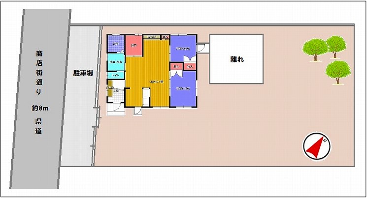 | 参考 | ■長者町商店街の通りに面した菜園も出来る敷地約123坪の離れ付きの平家住宅です。建物は内外リフォーム済ですぐに利用出来ます。銀行、歯科医、郵便局等近く生活便利。 |